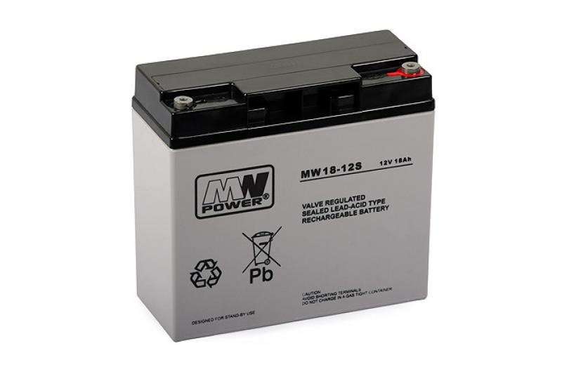 The MW 18-12S rechargeable battery is a maintenance-free lead-acid battery (VRLA). Due to Absorbed Glass Mat (AGM) technology, where the electrolyte is placed in fiber glass separators, the battery can be used in almost any position (there is no liquid electrolyte).