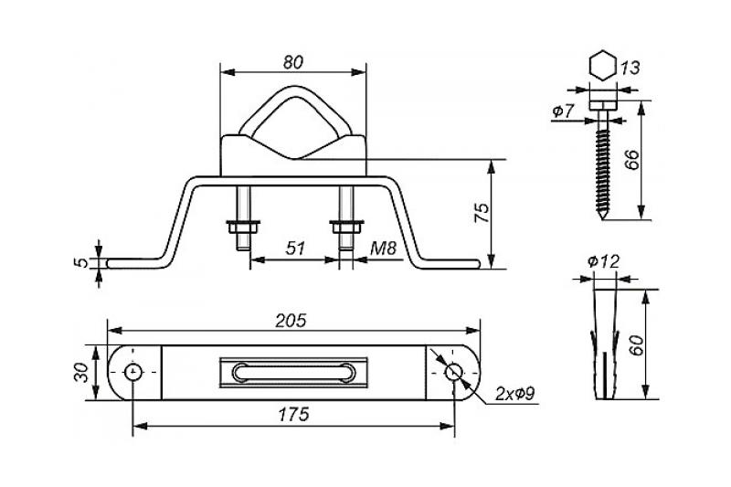 Suitable for fixing a 50mm mast to a wall maximum diameter.
