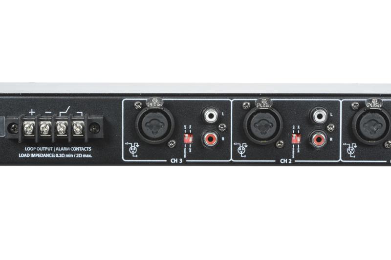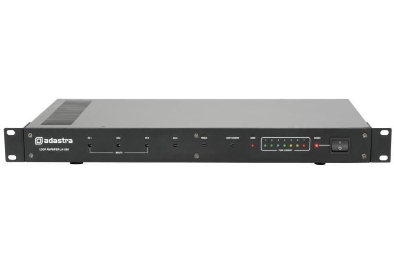 An induction amplifier for driving a cable loop around a room to provide assisted listening for hearing aid users. Front panel controls are adjusted using a screwdriver including level controls for the 3 mic/line channels, bass, treble and loop current. Designed to provide hearing assistance in public and commercial buildings.