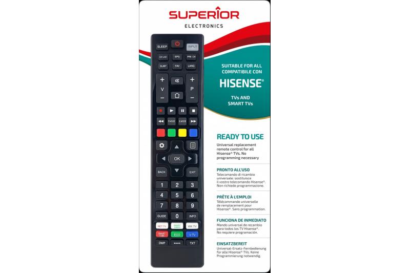 TYPE: Universal remote control for all Hisense TVs produced after the year 2000. Includes all the functions, both standard and advanced, plus all the keys of the original remote control. Keys are large and soft to the touch