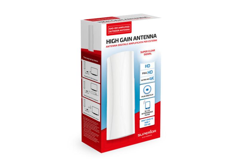 This antenna has been designed for the reception of analogue and digital terrestrial TV signals.